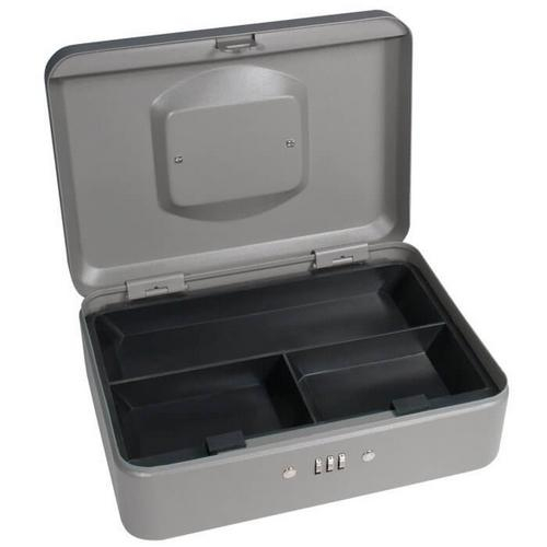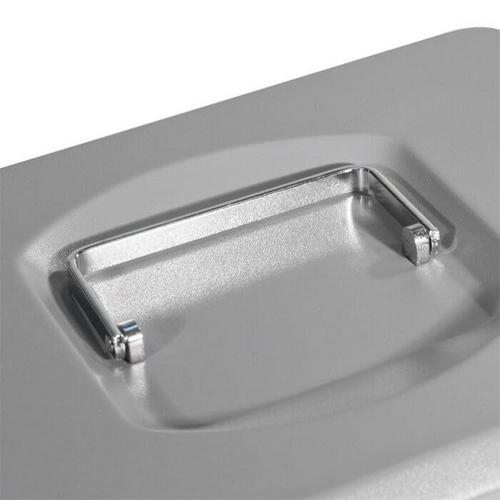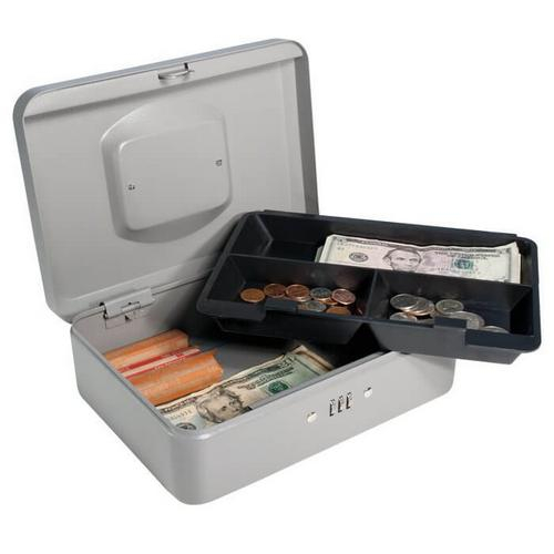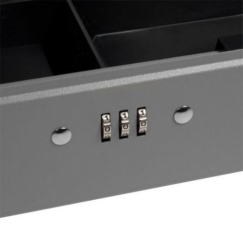 This multi-purpose box is ideal for storing cash, valuables and can be used for storage home and businesses. Features a resettable combination lock for key-less entry perfect for organizations because it allows for multiple user access. Useful recessed fold down carrying handle for portability and storage.