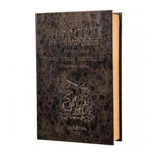 From the exterior the large antique book safe with key lock by Barska is made to look and feel like an antique bound book, but hidden in the book is a concealed compartment to store valuables. The front cover of the book features a magnetic closure ensuring that the antique book safe stays closed. The compartment of the safe features a strong steel safe door. The book safe blends easily in any home and is hidden in plain sight. Included with the safe are a set of keys. Perfect for storing passports, documents, money, jewelry and more.