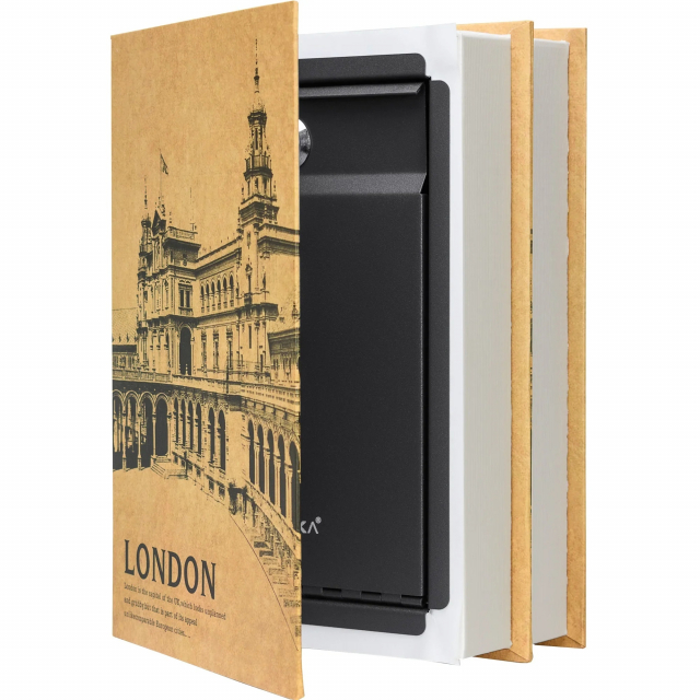 Crafted from robust compact steel, this book lock box offers strength and durability to keep your items safe. With dimensions of 3.5 inches in depth, 7 inches in width, and 10.5 inches in height, it strikes a balance between compactness and functionality. The inclusion of a manual key lock with 2 keys provides an extra layer of security for your belongings. Whether for personal or professional use, this lock box offers both convenience and peace of mind.