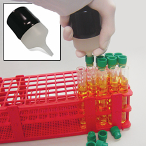 Eliminates fatigue and soreness of hands and fingers from the repetitive task of applying test tube caps. Test Tube Capper fits comfortably in the palm of your hand. Use tip to apply pressure and securely cap tubes.