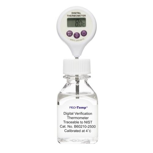 Digital verification thermometers verify sample temperatures inside refrigerators and incubators without the use of a cable.