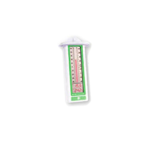 Maximum/minimum thermometers display the current temperature and register the maximum and minimum temperatures attained since the last reset. Maximum/Minimum thermometers are for use in high moisture or wet environments including green houses, sample prep areas and water treatment facilities.