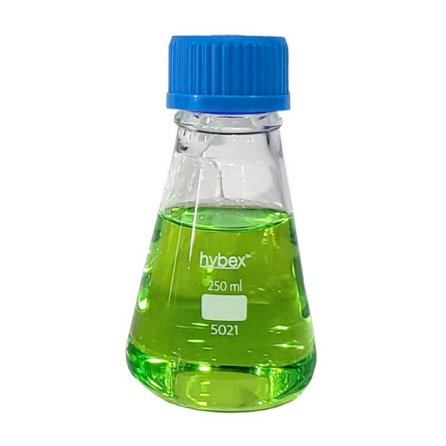 Erlenmeyer Flasks are manufactured from high quality, borosilicate 3.3 glass. A low coefficient of thermal expansion (3.3), provides temperature resistance that is far superior to that of standard lab glass (or soda lime glass). Hybex glass is designed to withstand high temperatures, making them ideal for shaking applications, media preparation and long-term storage. The standard erlenmeyer flasks have permanent, white enamel graduations for volume measurement and a white identification box for marking or coding.For storage of media and cultures, the capped flasks include an autoclavable polypropylene cap & drip-ring. Optional cap colors are available, as well as PBT material caps for temperature applications up to 180°C. (Threads are standard GL-45 for compatibility with a wide range of cap types from various manufacturers, including phenoic caps, vented caps, etc.)