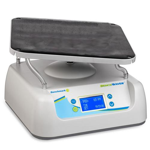 The BenchWaver™ combines the basic rocking motion of traditional platform rockers with the circular motion of an orbital shaker. This combination is ideal for generating the optimum 3-dimensional “undulating” motion commonly preferred for molecular biology applications. The tilt angle is instantly adjustable (no tools or disassembly required) from 0 to 10° and the mixing speed can be adjusted from 5 to 105 rpm, using the large, user-friendly LCD control panel. Combined control of both parameters (tilt and speed) makes the BenchWaver a versatile workhorse that can provide anything from gentle, slow moving waves to a rapid, more vigorous motion. Additionally, time of operation can be selected from1 minute up to 99 hours or for continuous operation. The large 13.5 x 13 inch platform is supplied complete with a non-slip, rubber mat. BenchWaver is a reliable and versatile instrument and can be used in refrigerated or incubated.