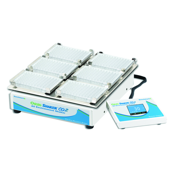 The new Orbi-Shaker CO2-MP is designed for thorough, mixing of microplates in extreme environments, including CO2 incubators. It can withstand temperatures from 0 to 65°C and humidity levels up to 100%. To avoid contamination, unintentional release of gas or deviations from protocol, both speed and time are set via the included remote control module. The remote controller can magnetically mount to the outer walls of the incubator and allows the user to set and adjust the shaker settings without opening the chamber door(s).