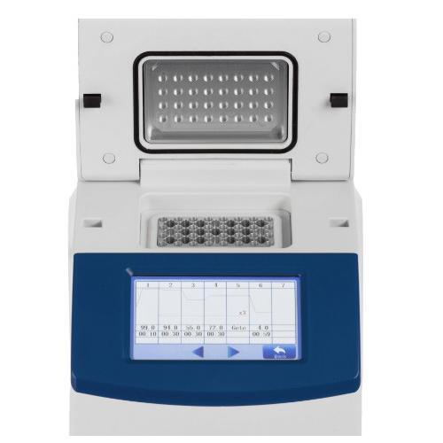 Operation of the thermal cycler is controlled from the large, full color, touch screen. Icon driven menus allow users to get running quickly. Programming is extremely simple and includes options for time and temperature increment/decrements, adjustable ramp rates, and an auto pause and restart functions. More than 100 typical programs can be stored in memory and easily recalled. After a run, samples can be held at 4°C. An on-screen report is also available at the completion of a run.
