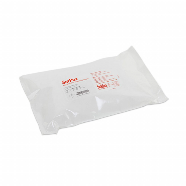 Berkshire Sterile SatPax® 1200 combines Super Polx® 1200 cleanroom laundered wipes (composed of 100% continuous filament polyester knit fabric) with a high saturation level of 70% IPA and 30% DI water. This pre-wetted wiper format provides a more cost-effective and easy-to-use solution compared to manual wetting of dry wipes, which requires bulk handling of solvents and maintenance of squirt bottles and results in inconsistent wetting and cleaning. Each package is then gamma irradiated sterile to a 10-6 Sterility Assurance Level making the product ideal for cleaning critical sterile or aseptic processing environments.