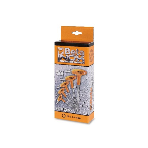 Beta Tools, 000961952, 96TINOX/S5 Set of 5 SS Offset Hexagon Key Wrenches with High Torque Handles