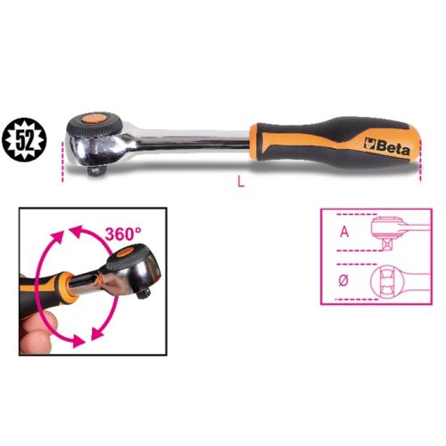 3/8" drive reversible ratchet with rotating handle, 52 tooth mechanism