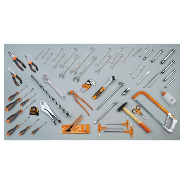 Beta Tools, 021191125, 2119L-VU/3 Tool Box Made from Sheet Metal with Assortment of 74 Tools, Universal Use