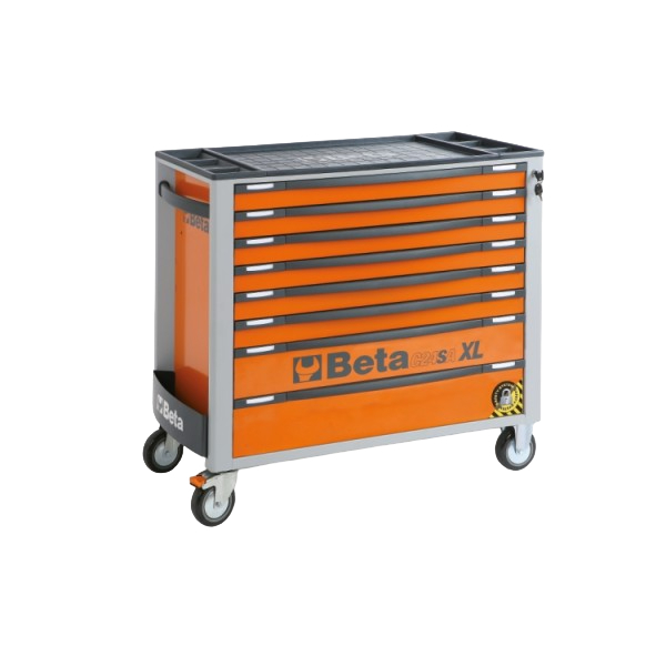 Beta Tools, 024002281, Mobile Roller Cab with Eight Drawers with Anti-Tilt System, Long Model, Orange