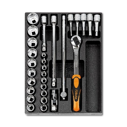 Beta Tools, 024240082, T82 Assortment Set of 1/2" Drive Reversible Ratchet, Accessories in Thermoformed Tray