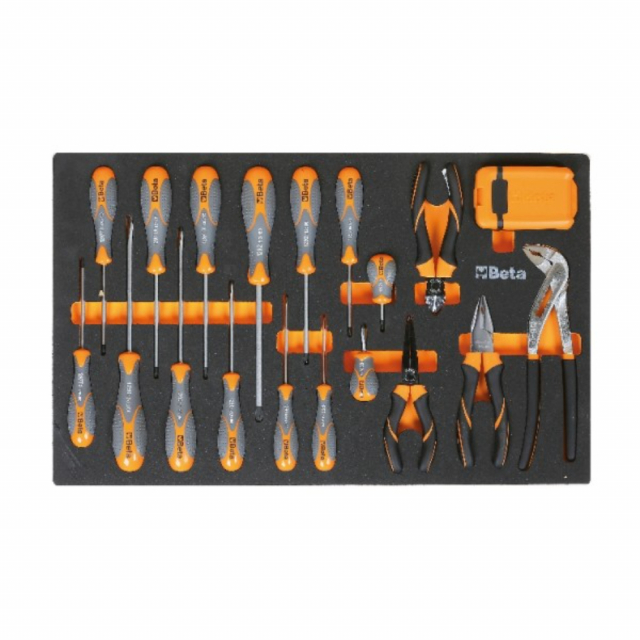 Beta Tools, 024500879, Foam tray with Beta Max screwdrivers, pliers and 1/4" bits