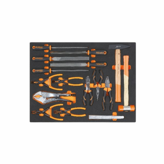 Beta Tools, 024504265, Foam Tray with Impact Tools, Files, Circlip and Self-Locking Pliers