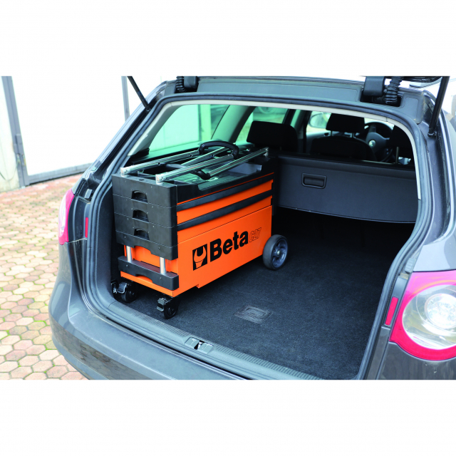 Transport tools with ease with Beta's C27S patented collapsible tool trolley, designed for both indoor and outdoor jobs. The 36" tall tool cart easily rolls across the shop floor, or racetrack and collapses to just 20" tall to haul your tools to any jobsite.