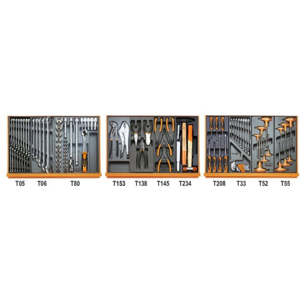 Beta Tools, 059041191, 5904VG/2T Assortment of 99 Tools for Car Repairs in ABS Thermoformed Trays