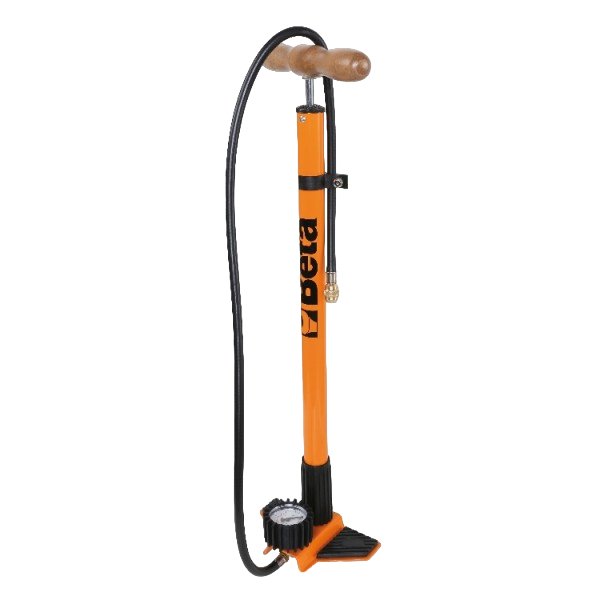 Max 12 bar/ 180psi Pump is supplied with adapter for all types of valve (Schrader, Presta/Sclaverand, Regina) Firm base with nonslip coating Convenient, ergonomic wood handle Jumbo brass fitting, screwed onto valve to ensure a perfect seal between inner tube and pump Gauge Ø 50 mm, class 2.5 bar/psi scale.