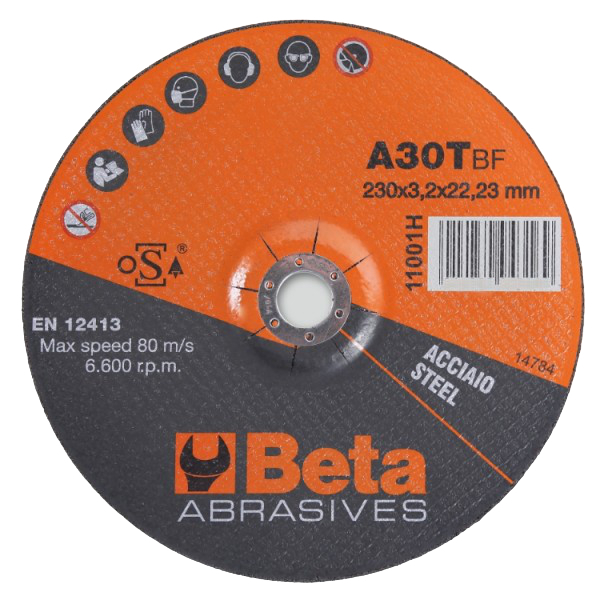 Beta Tools, 110010733, Abrasive Steel Cutting Discs with Depressed Centre, 230 mm