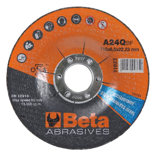 Beta Tools, 110230115, Abrasive Steel and Stainless Steel Grinding Disc with Depressed Centre, 115 mm