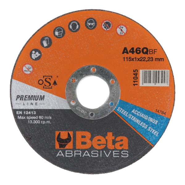 Beta Tools, 110450010, Abrasive Steel and Stainless Steel Cutting Disc, Thin with Flat Centre, 1 mm