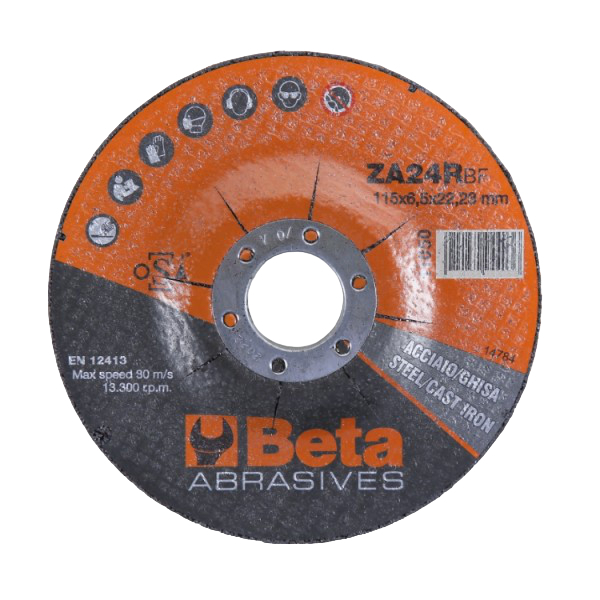 Beta Tools, 110500115, Abrasive Steel Grinding Disc with Zirconia Abrasive and Depressed Centre, 115 mm