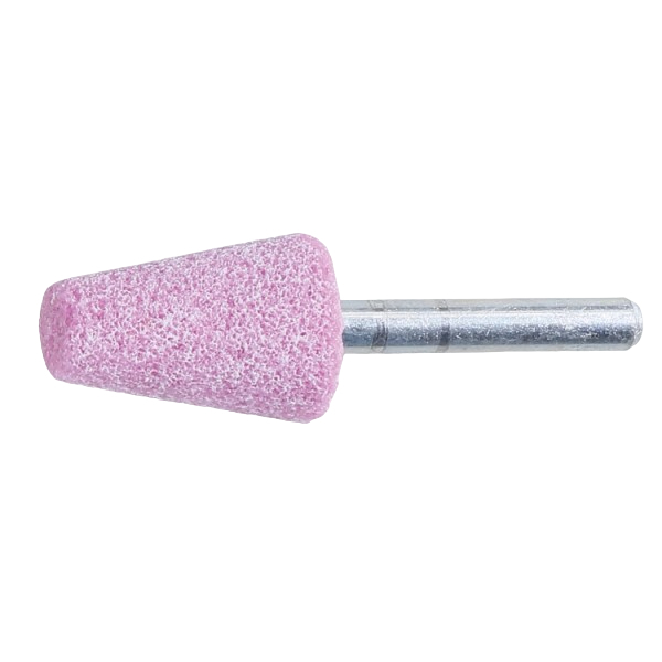 Beta Tools, 111070015, Abrasive Shaft-Mounted Wheel, Abrasive Pink Corundum Grains, Ceramic Bonded, Trapezoidally Shaped for Universal Use, Shaft ⌀ 6 mm x 40 mm, 15 mm x 25 mm
