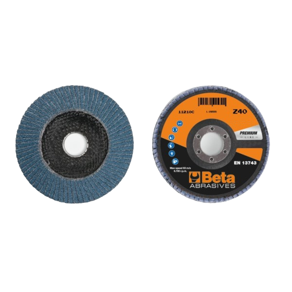 Beta Tools, 112100204, Flap Disc with Zirconia Abrasive Cloth, Fibreglass Backing Pad, Single Flap Construction, Cone-Shaped, Premium Line, P 40