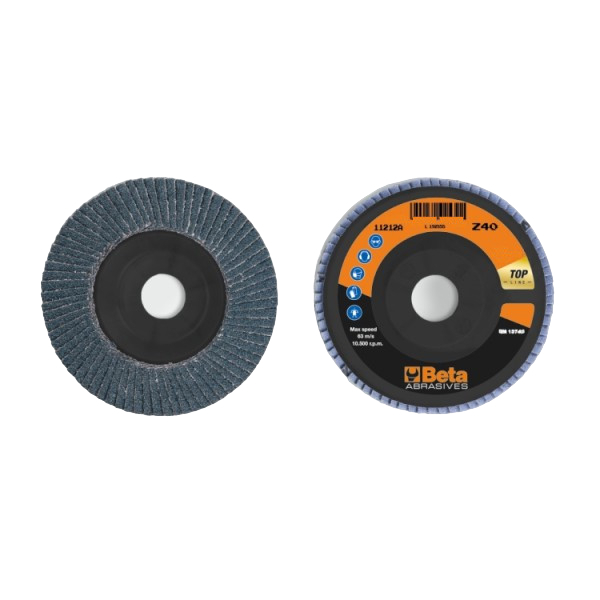 Beta Tools, 112120008, Flap Disc with Zirconia Abrasive Cloth, Plastic Backing Pad, Single Flap Construction, Flat, Top Line, P 80