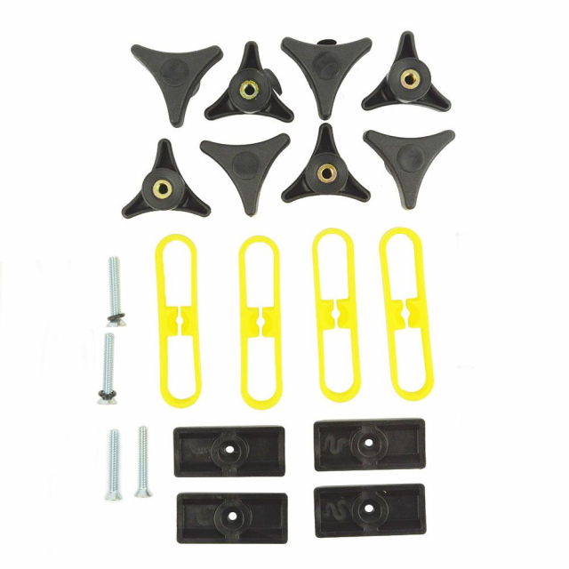Big Horn 13016 Universal Jig Making Kit. A must have item for anyone building homemade jigs. Kit contains eight knobs, eight screws, funiversal track adapters and fT-Track adapters.