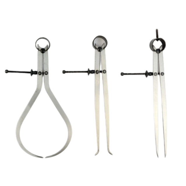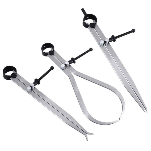Big Horn 19053C 3 pieces 8" Caliper Set. High Carbon Steel with hardened fulcrum spring and points for long life. Precision ground with threaded spool mechanism for infinite adjustment.