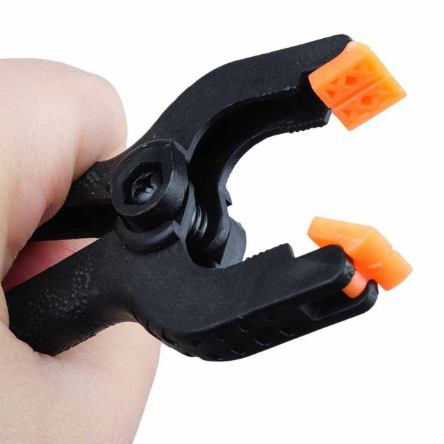 Big Horn 19088 Black Spring Clamp 1-1/2" Jaw. Spring action clamps with swivel tipped jaws to hold onto work firmly. Flexible pads apply even pressure on both sides. Made of reinforced rigid plastic.