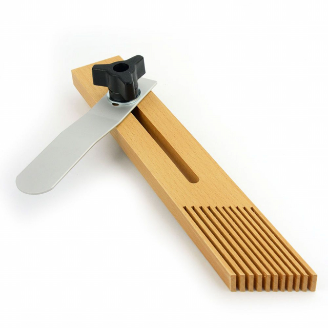 Big Horn 19134 Wood Featherboard. Made of wood and metal. Makes ripping long stock easier and safer by keeping stock against the fence. Fits standard miter slots.