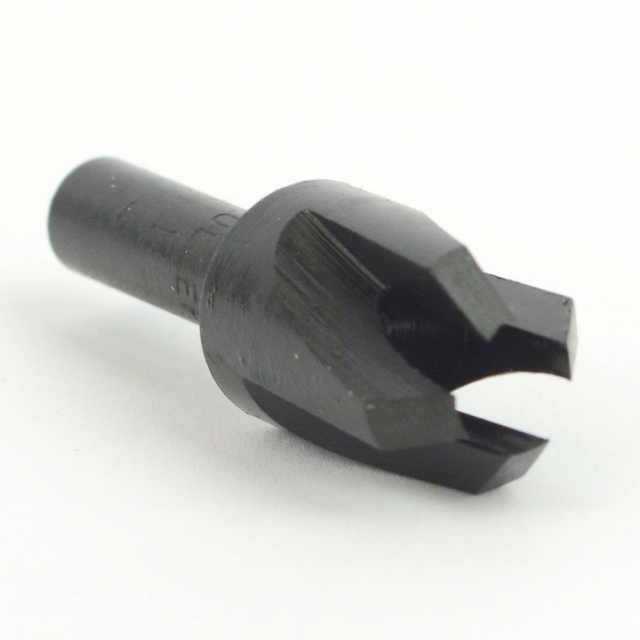 Big Horn 19150 1/4" Plug Cutter. Designed for clean cutting and hardened for long life. This plug cutter does not eject the plug. The plug remains in the board and can be broken out with a screwdriver or the board can be sawed to free the plug. This tool cuts fast and makes smooth chamfered plugs for easy starting in counter bored holes. W. L. Fuller # 11640250.