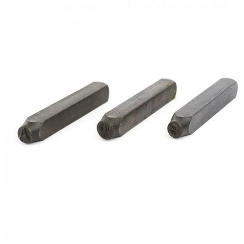 Number and Letter Die Stamp Set. Made from case hardened steel. 3/8'' dies will stamp letters, names, or numbers into metal, wood, Aluminum, etc. The 36 piece die set Includes all 26 letters A-Z, plus numbers 0-8, no. 6 is inverted to make no. 9 . The font type is Arial. Stamp set measurements are from top to bottom of the letters and numerals.
