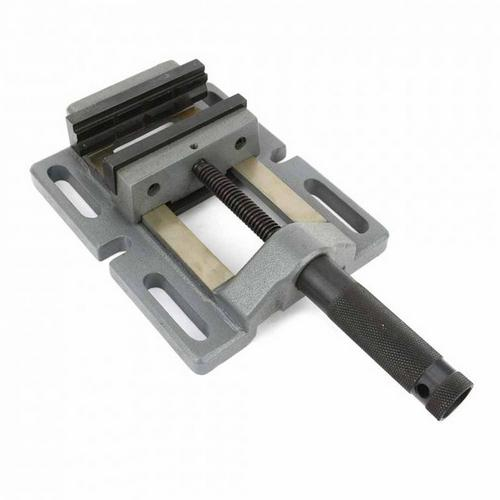 A strongly and solidly built vice constructed from graded cast iron and designed for use with bench drills and drill presses. Its compact low profile design makes it suitable for a wide range of metal and woodworking applications. The locking spindle moves inside the hollow handle grip allowing the vice to be tightened at any position on the drilling table.The longer clamping slots also permit rapid adjustment of the vice on the work table. The fixed jaw has three longitudinal and one transversal prism to facilitate clamping of flat work pieces. Recommended Vice for use on Drill Presses, Milling Machines and Grinders.