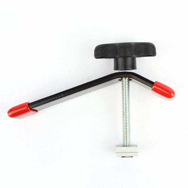 Big Horn 19807 Miter Track Hold Down Kit. This compact version of Big Horn's Hold-Down Clamp is ideal for smaller work surfaces, such as benchtop router tables and shop-made jigs. This clamp has a 1-1/2 capacity and no-marring PVC tips are ideal for working with soft woods, pre-finished panels, or anything that's already been prep sanded.