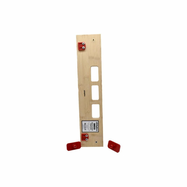 The red plastic center locators and the red plastic stops on the underside of the template are used in the same way. The strike template is used on the door jamb and the latch template is used on the edge of the door. Follow the instructions below using a 1/2" hinge mortising bit and a 5/8" OD template guide on your router to create the proper mortises for your jamb and door.