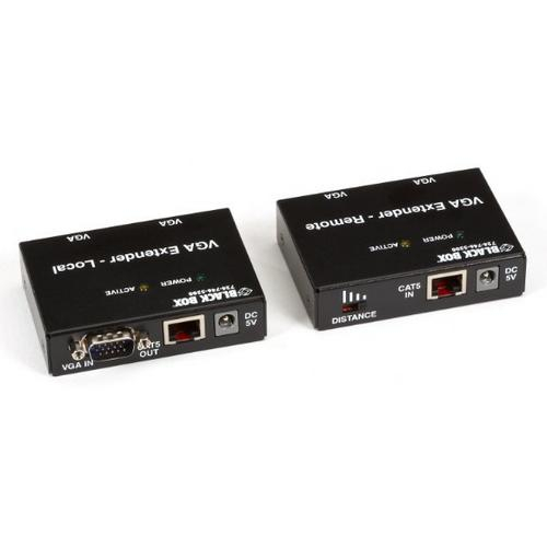This unit features a simple and functional design. The transmitter (local unit) duplicates the input VGA signal and transmits it through CAT5 cable to the receiver (remote unit), which broadcasts the signal to two VGA outputs.