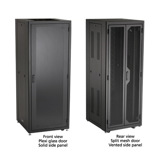 Elite Server Cabinet, 72"H (38U) x 30"W x 32"D, M6 Rails, PLEXIGLAS ® Front Door, Mesh Rear Door, Solid Side Panels, 3-Fan Top Panel, Keyed Locks