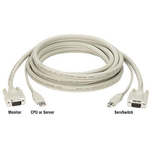 These cables are for connecting USB-enabled CPUs and servers to the ServSwitch USB and the ServSwitch USB Plus. They’re available in 4- to 16-foot (1.2- to 4.8-m) lengths. Distance is limited by the USB specification.