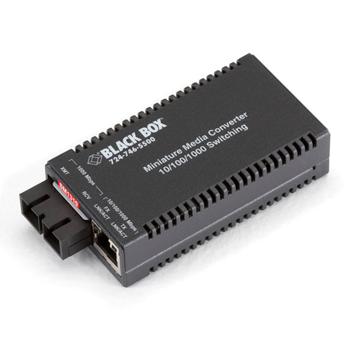 Bring fiber to the desktop more conveniently and at a lower cost than installing fiber NICs. This single-strand fiber media converter enables you to make two Ethernet connections over a duplex fiber cable, so you need to run less fiber. Black Box® Miniature Media Converters make it easy to bring fiber to the desktop. Just connect a Miniature Media Converter to your PC’s copper port with a CAT5 cable, then connect a fiber cable to the converter’s other side. That’s all there is to it! Best of all, you can tuck these tiny converters unobtrusively behind your PC. This single-mode duplex fiber converter supports distances of up to 40 kilometers (24.8 mi.).
