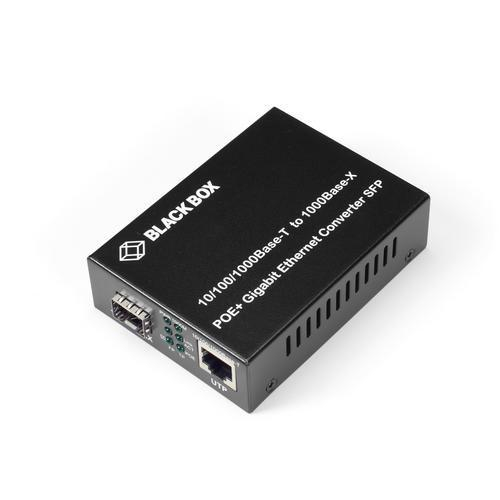Black Box, LGC215A, Pure Networking Copper to Fiber Media Converter - 10/100/1000BASE-TX to 1000BASE-X SFP PoE+