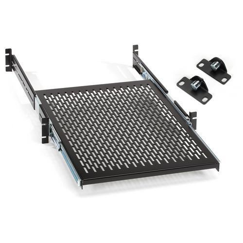 Black Box, RMS1924S-LOCK, IT Rackmount Vented Shelf - Sliding, Locking, 1U, 19", 24"D, 4-Point Mounting