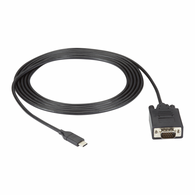 Black Box All-in-One USB Type-C to VGA adapter cable allows you to connect your laptop, tablet, smartphone, or another device to a VGA monitor, projector, or display. Utilizing the USB-C or Thunderbolt 3 port on your source device, video content is seamlessly transmitted using DisplayPort 1.2 Alternate Mode technology; no software or drivers are required. So whether you are working at the office or home, taking your device on the go to a customer site or a trade show, or just streaming shows on your monitor at home, you can easily display your content where you want it.