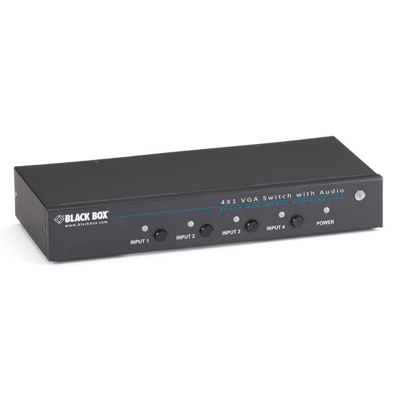 Use this low-priced, highly reliable 4 x 1 VGA Switch with Serial and Audio anywhere you need to route both video and audio from four PC sources to a common display.