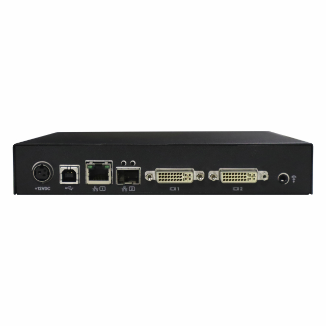 Black Box, EMD2002PE-T-R2, Emerald KVM-Over-IP Transmitter - Dual-Monitor, (2) DVI-D, USB 2.0, Audio, Dual Network Ports RJ45 and SFP