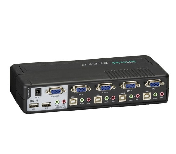 Control and switch multiple PS/2 or USB CPUs and their keyboard, video, mouse, and audio connections with the ServSwitch DT Pro II KVM switch. Link PS/2 KVM to PS/2 CPUs, USB KVM to PS/2 CPUs, PS/2 KVM to USB CPUs, or USB KVM to USB CPUs. Plus, you can connect audio and USB peripherals to the KVM switch.