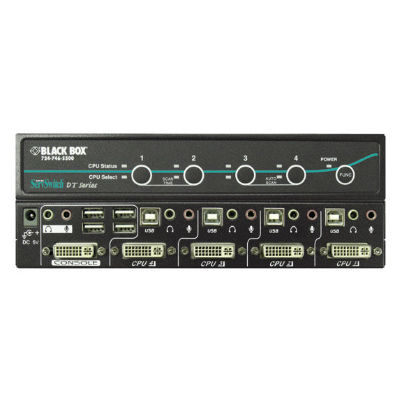 BlackBox, KV9604A, ServSwitch DT 4-Port DVI Switch with USB 2.0 Transparent
