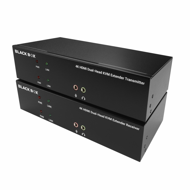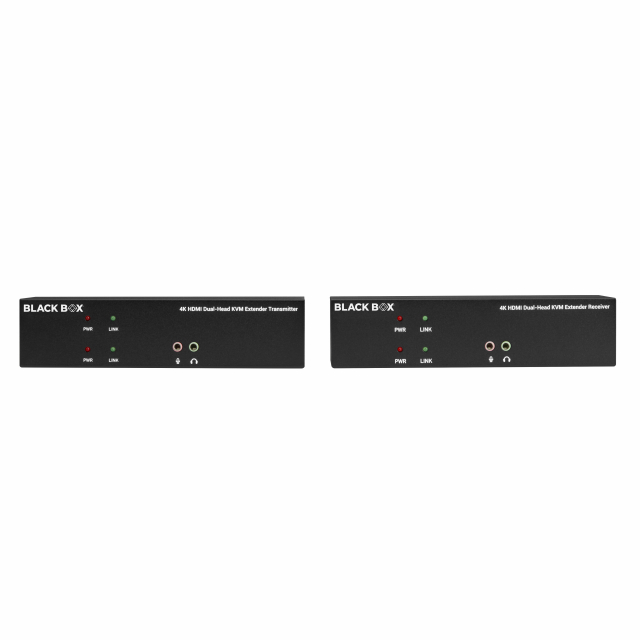 Black Box, KVXLCHF-200, KVM Extender Kit Over Fiber - Dual-Monitor, HDMI 4K30, USB 2.0, Audio, Serial, Local Video Out, SFP Port