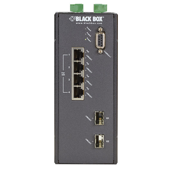 BlackBox, LEH1104A-2GSFP, Hardened Managed Ethernet Switch with (4) 10/100-Mbps PoE+ & (2) GE SFP Connectors